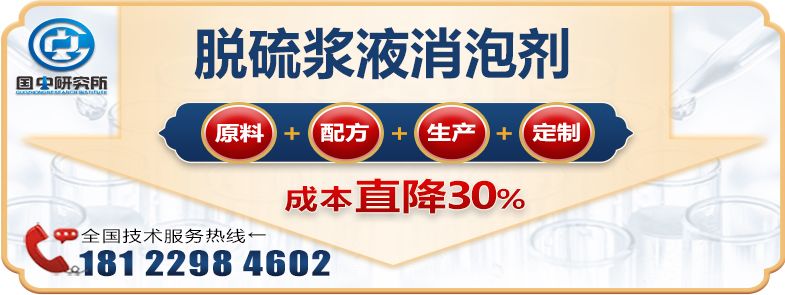 國中消泡劑研究所研發(fā)的脫硫漿液消泡劑是專門針對(duì)脫硫行業(yè)及其應(yīng)用而生產(chǎn)研制的,具有透明性、相容性好,長久消泡抑泡性能,從而控制塔內(nèi)液位,移除泡沫造成的虛高液位,防止?jié){液溢流,減緩因泡沫產(chǎn)生的熱交換器(GGH)結(jié)垢堵塞問題,增加脫硫的效率,進(jìn)而降低成本。